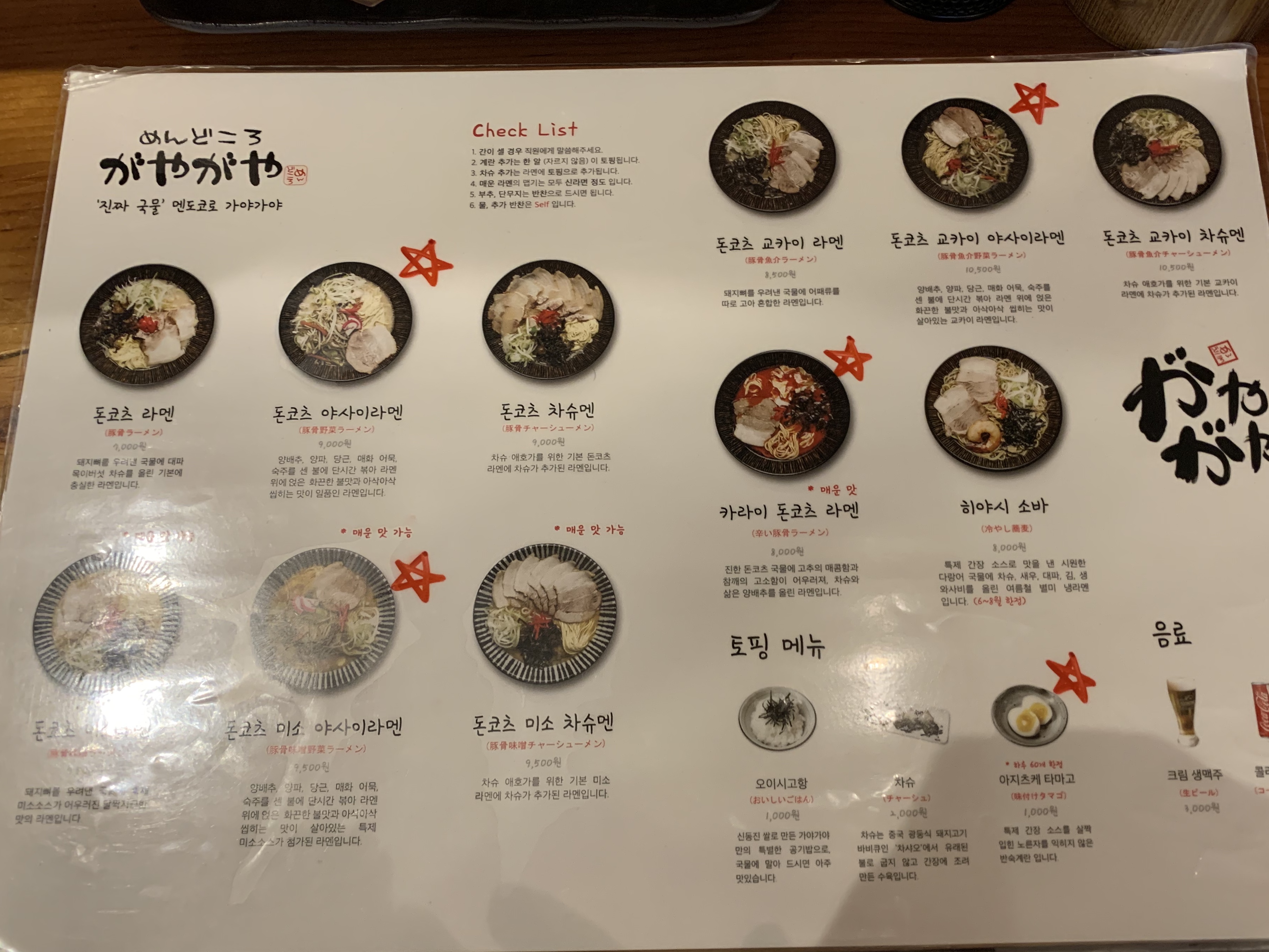 분명 냉소바를 보고 들어왔지만 유명한 집 스멜 + 별표에 홀려 돈코츠 야사이라멘을 주문하고야 말았다.