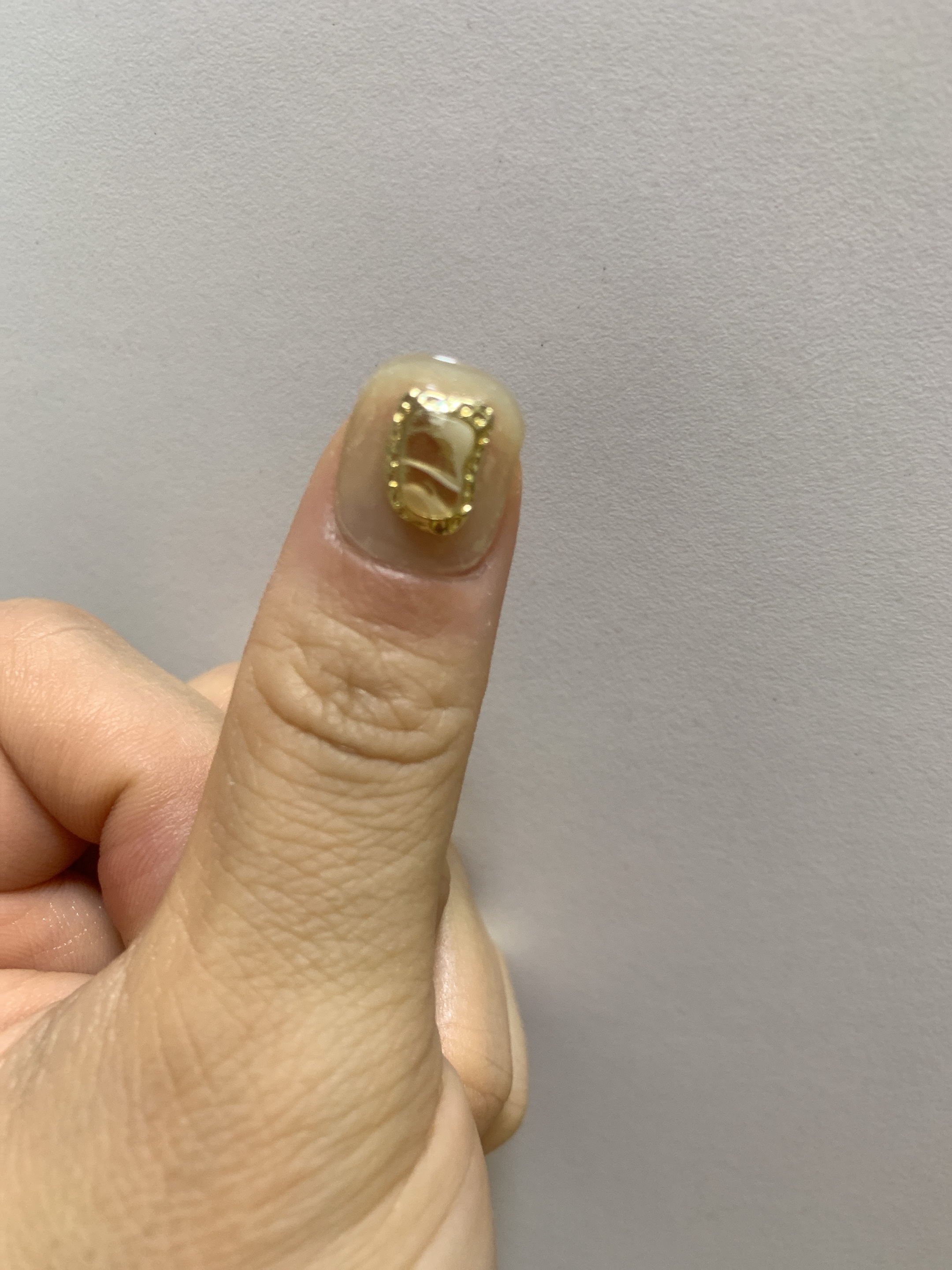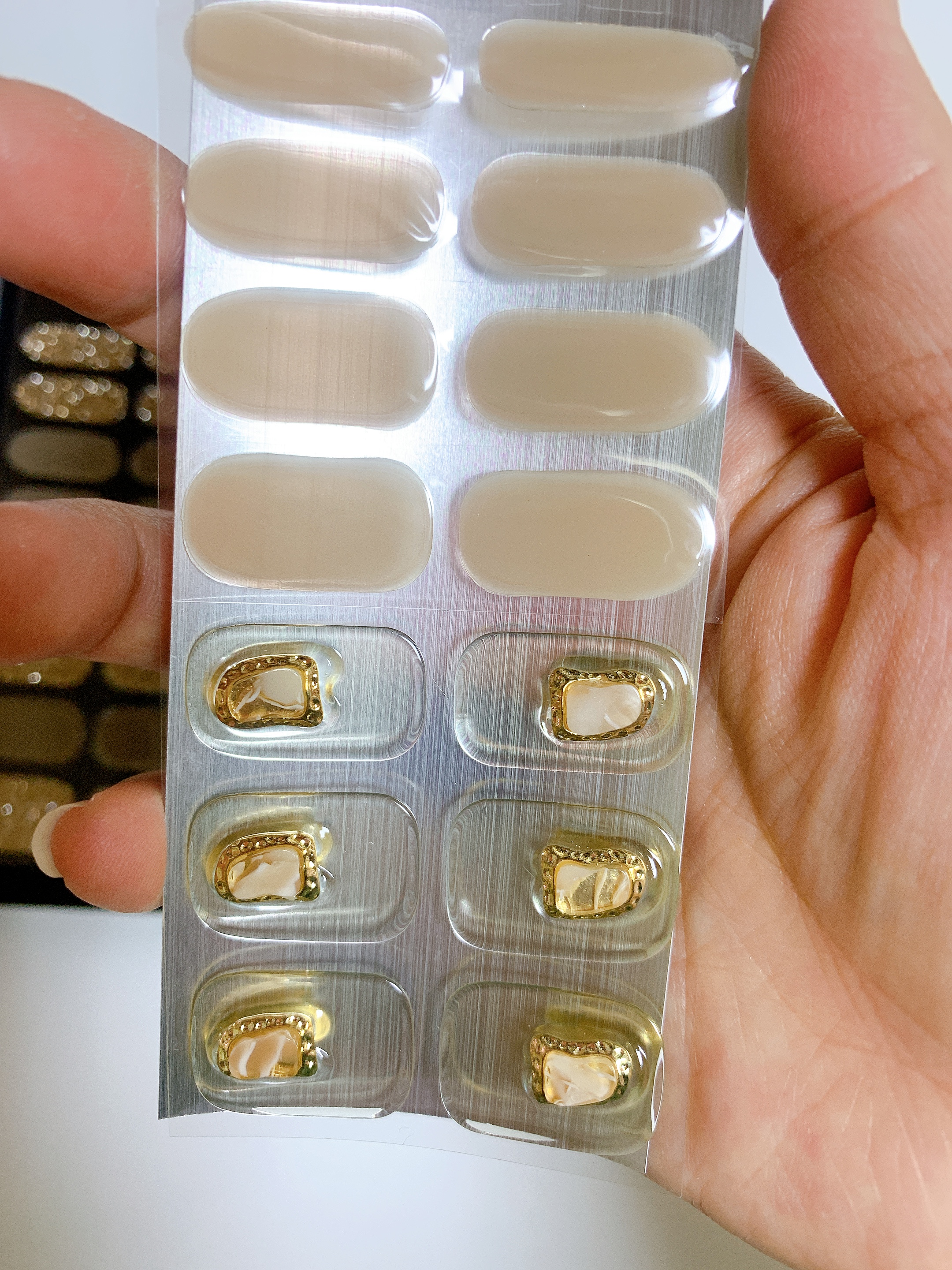 유지력을 위해 스톤을 둘러싼 금색 테두리 부분만 탑젤을 두껍게 발라보기도 하고 전체를 뒤덮어보기도 했다.