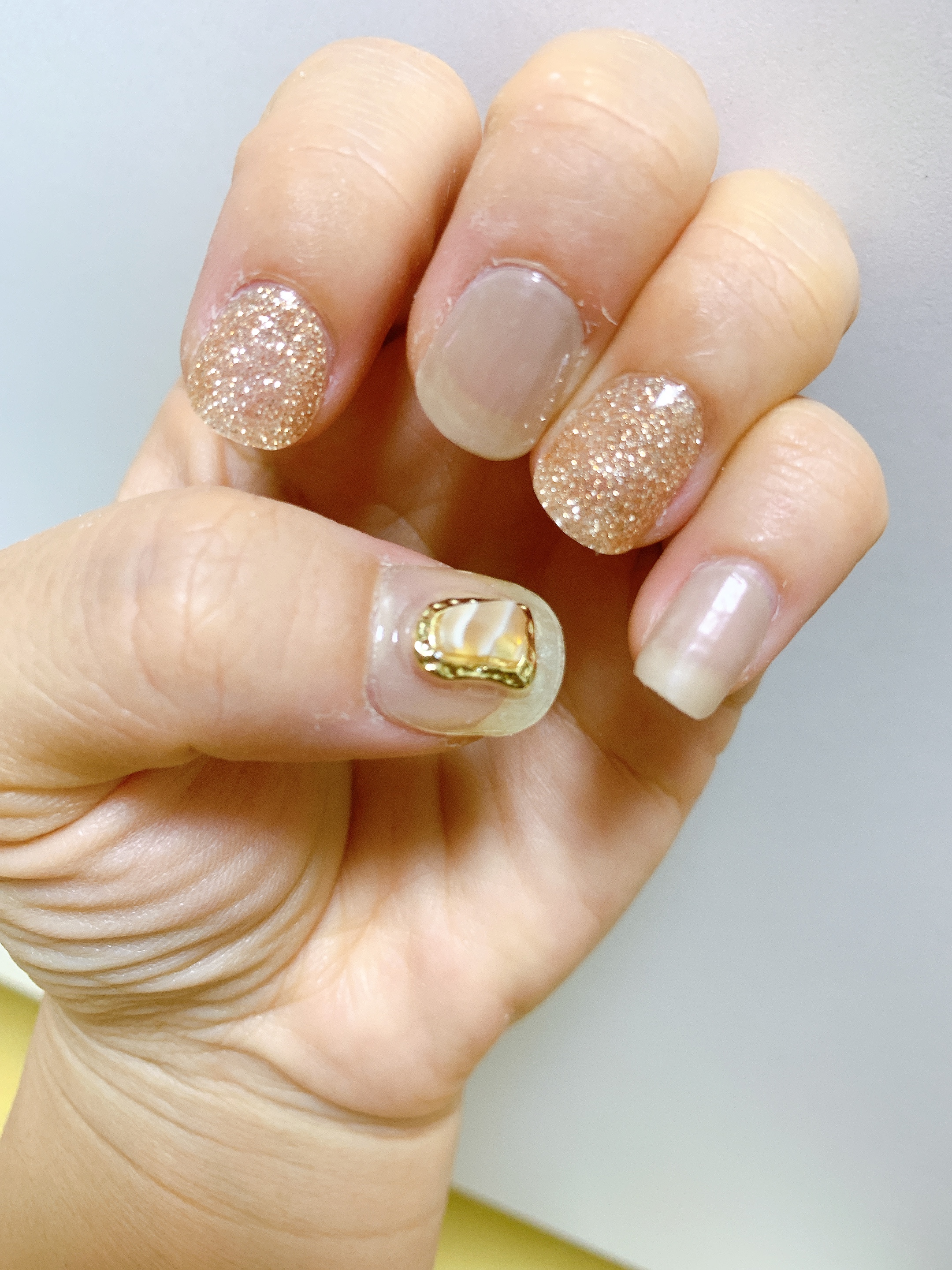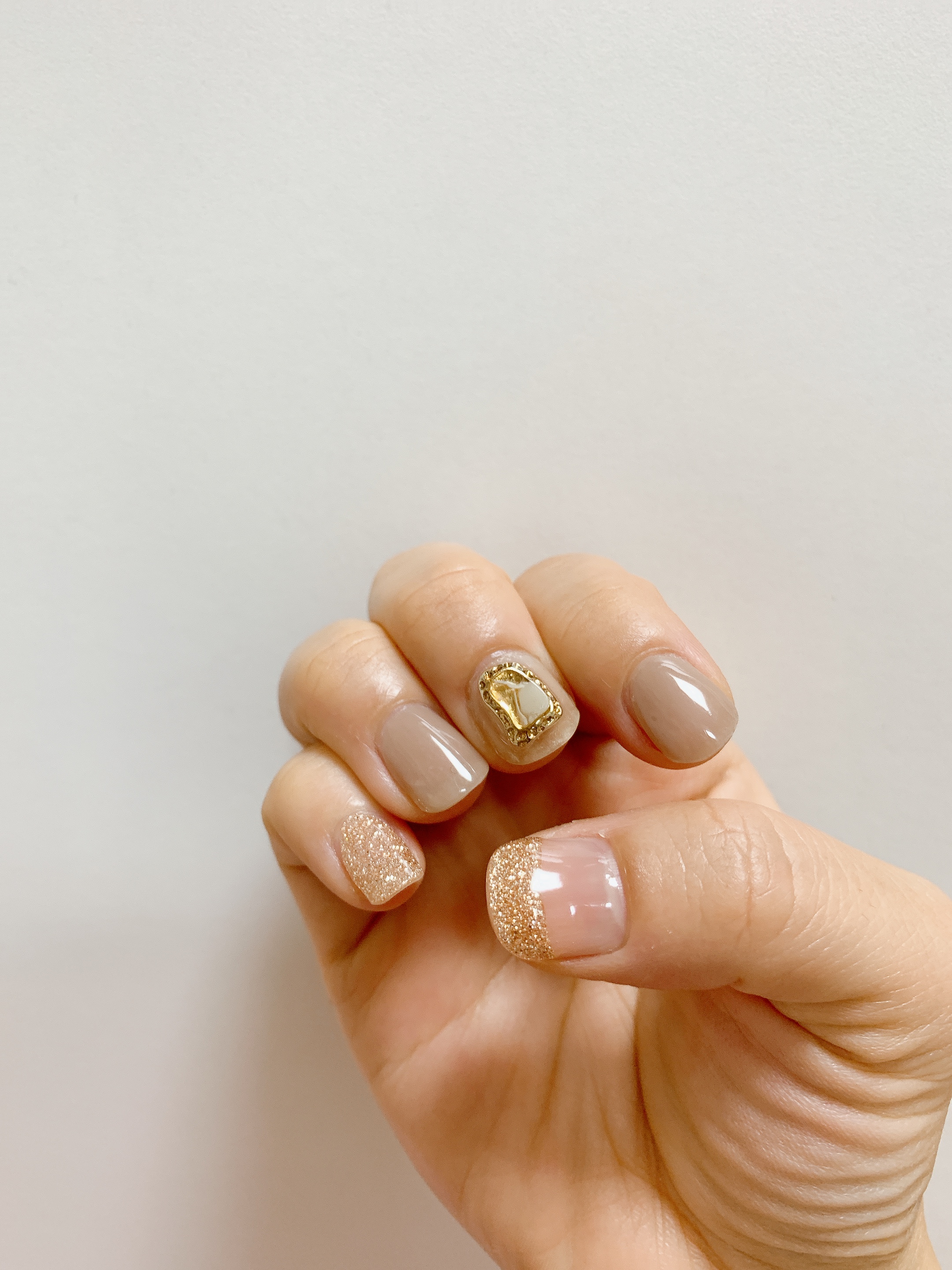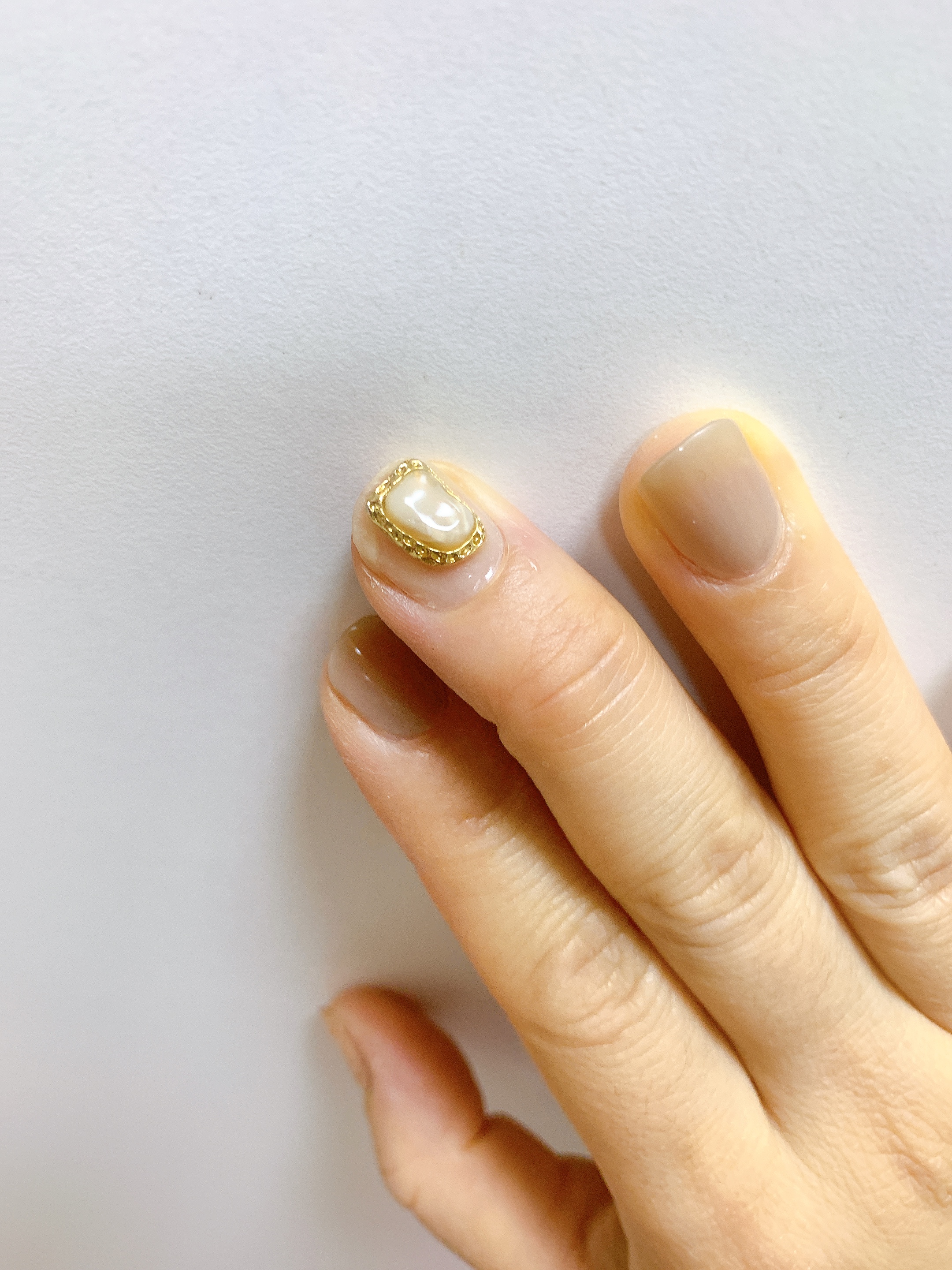 위의 문스톤 네일을 며칠 유지하다가, 스톤을 보면 볼수록 점점 마음에 들지 않아서 다 떼어버리고
