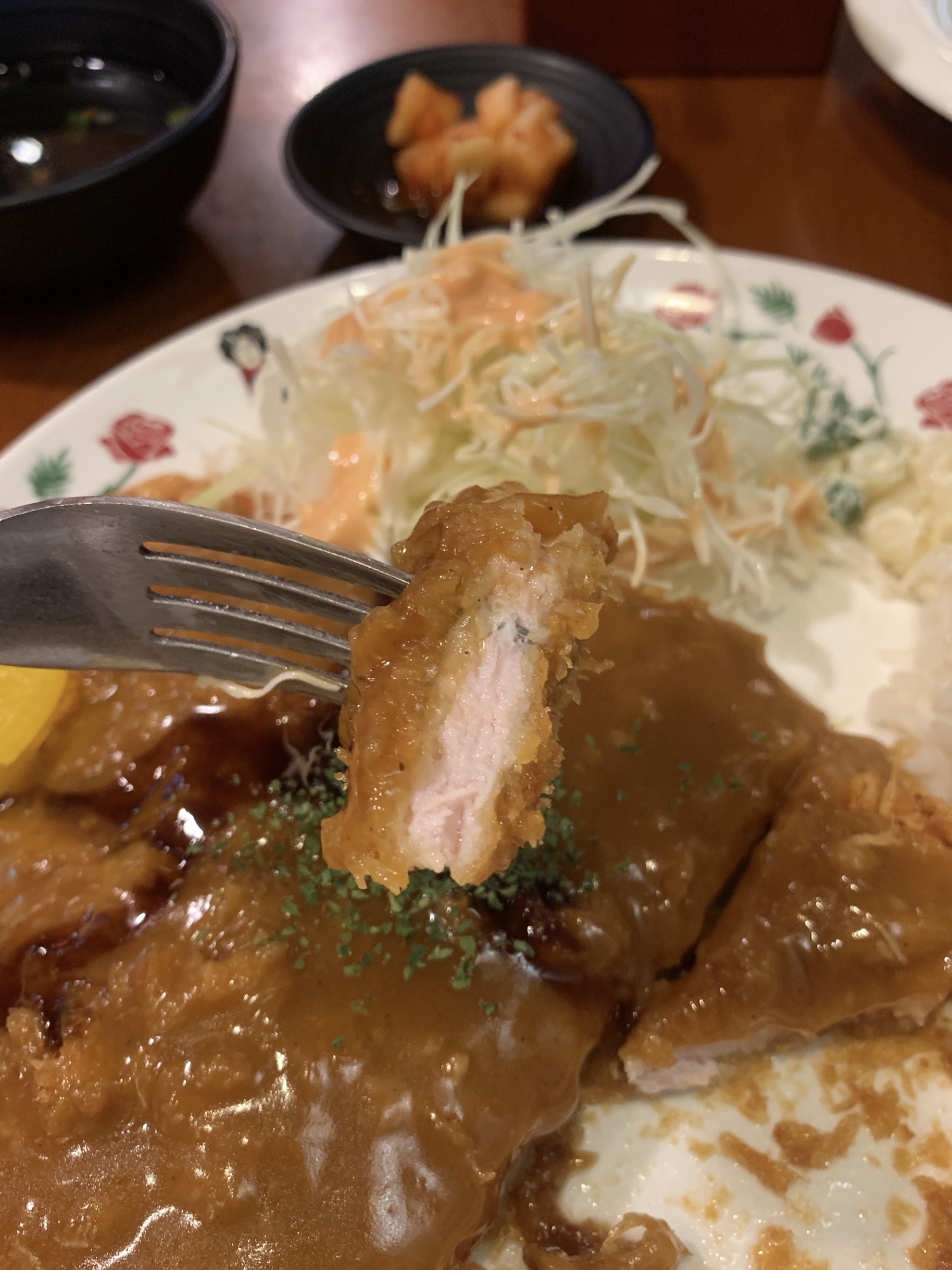 소스를 잔뜩 뿌려주셨음에도 돈가스의 바삭함을 느낄 수 있었다.