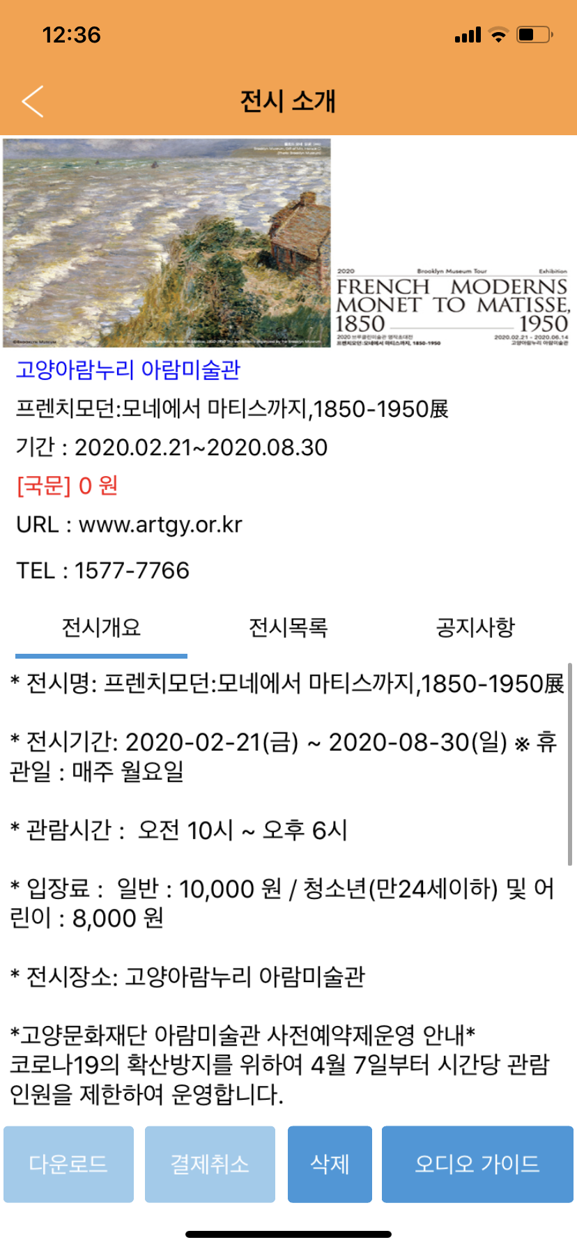 '가이드온'이라는 어플을 다운 받아서 해당 전시회 가이드를 다운받을 수 있다.