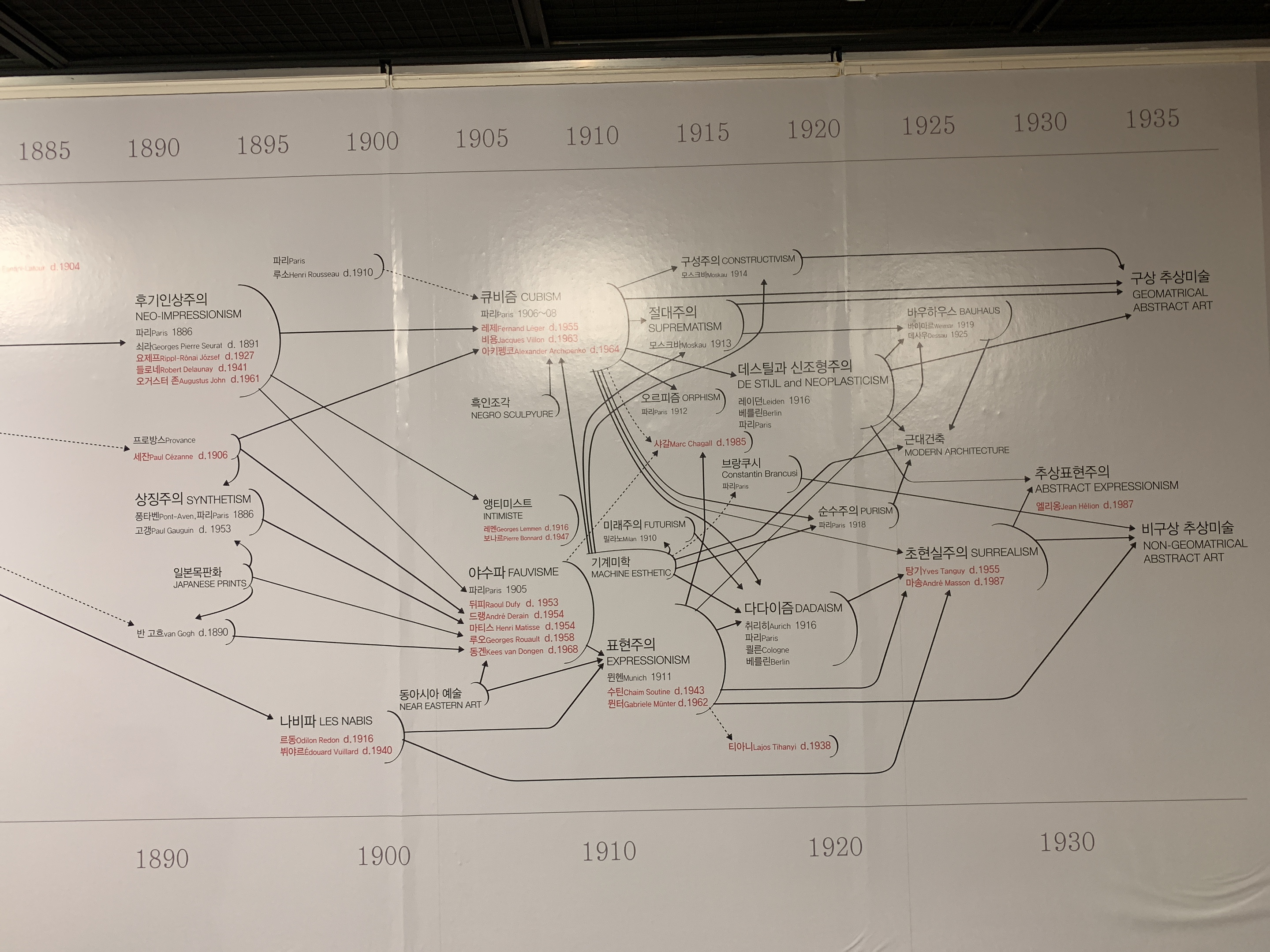 입구에서 등을 돌리면 이렇게 미술사의 흐름을 이해할 수 있도록 정리해놨다.