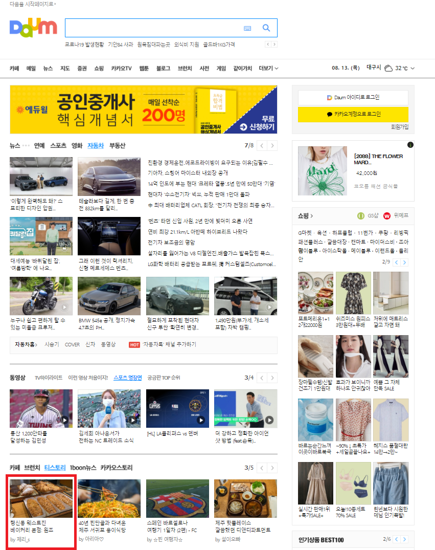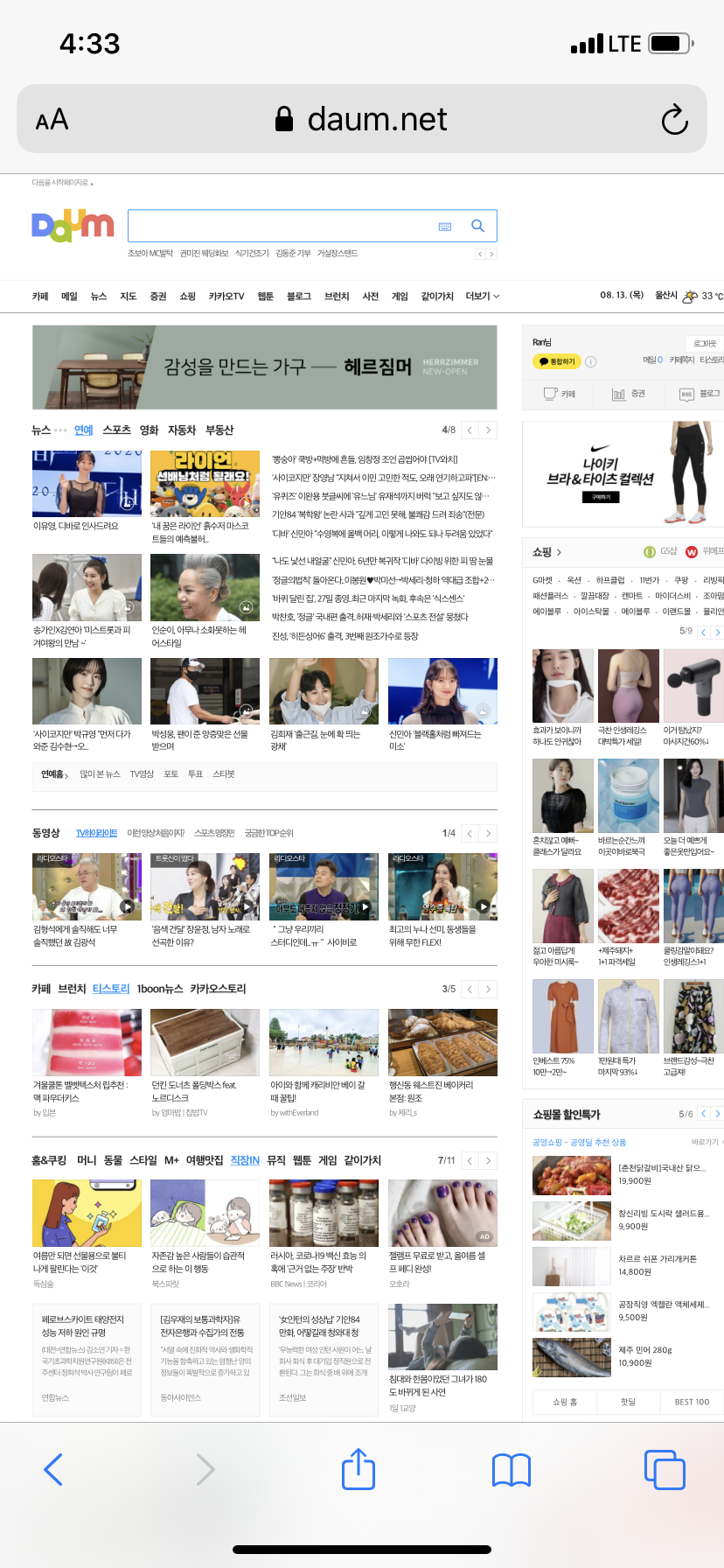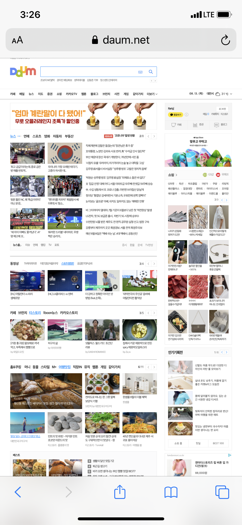 크롬 모바일웹 접속, 다음 앱 접속, PC버전 등등 다양한 화면에서 어떻게 나오는지 찾아보기.