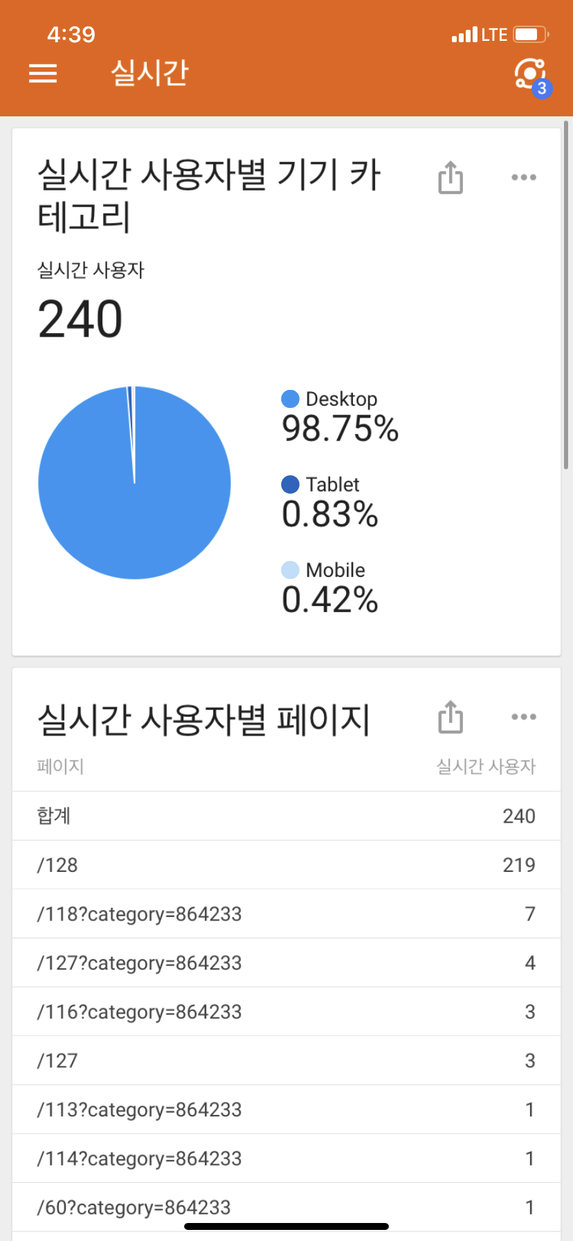 저번 포스팅에도 적었듯 또 메인에 노출된다면 GA로 실시간 방문자 수를 체크하겠다는 다짐을 했다.
