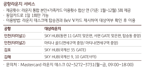 배우자 가족카드로 부모님의 라운지 입장을 최대한 커버하고