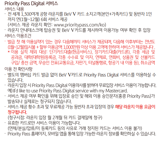 # 동반인 라운지 이용 : KB 국민카드 베브9, 베브5