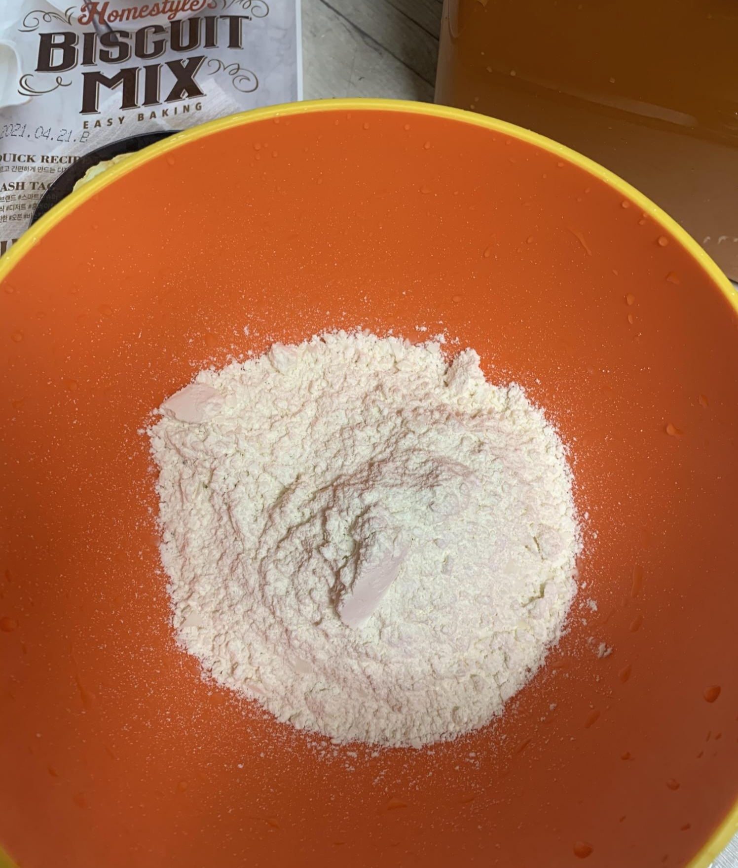 1. 비스킷 믹스를 믹싱볼에 부어준다.