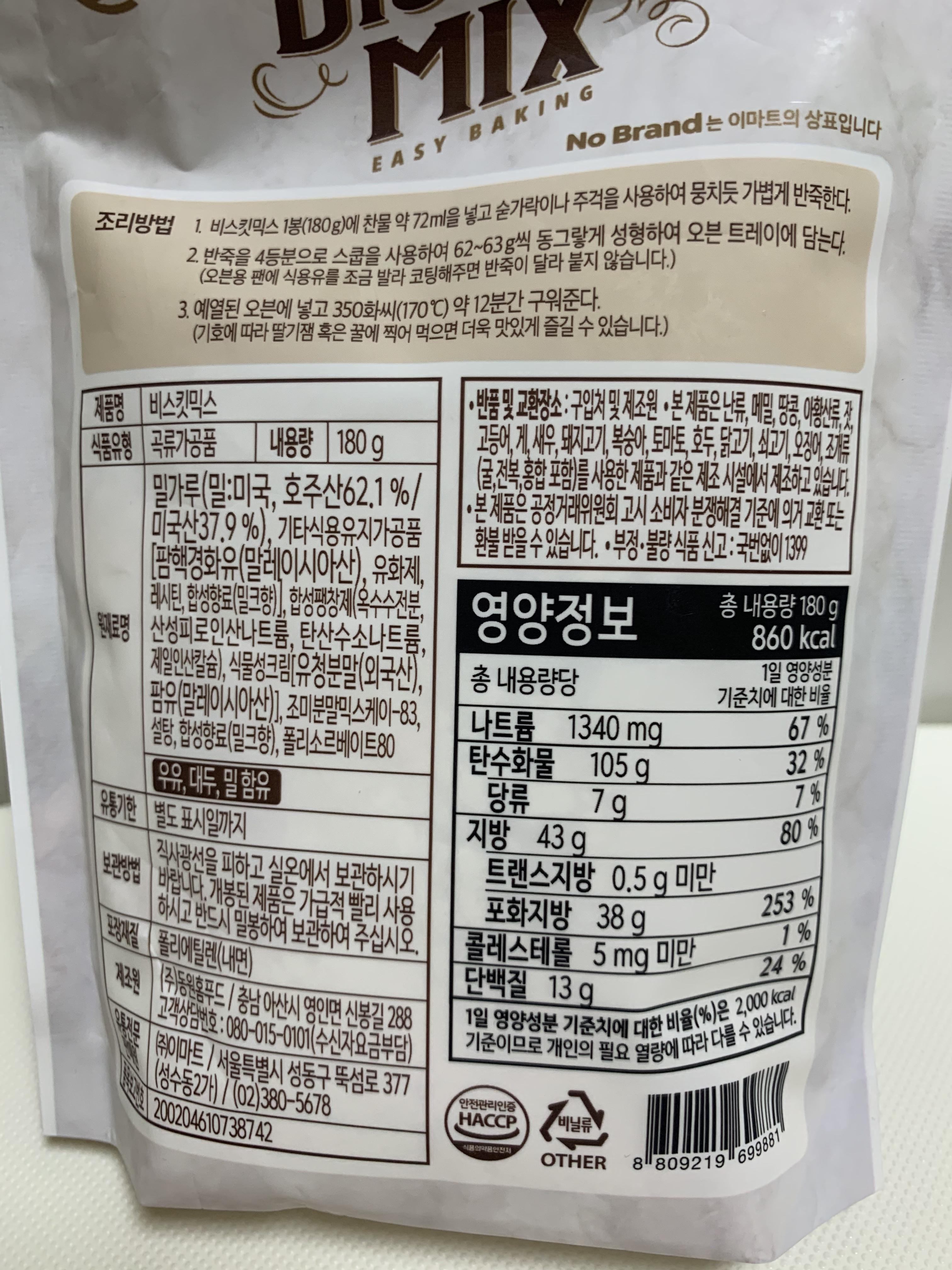 노브랜드에 들렀다가 비스킷 믹스가 간단해보여서
