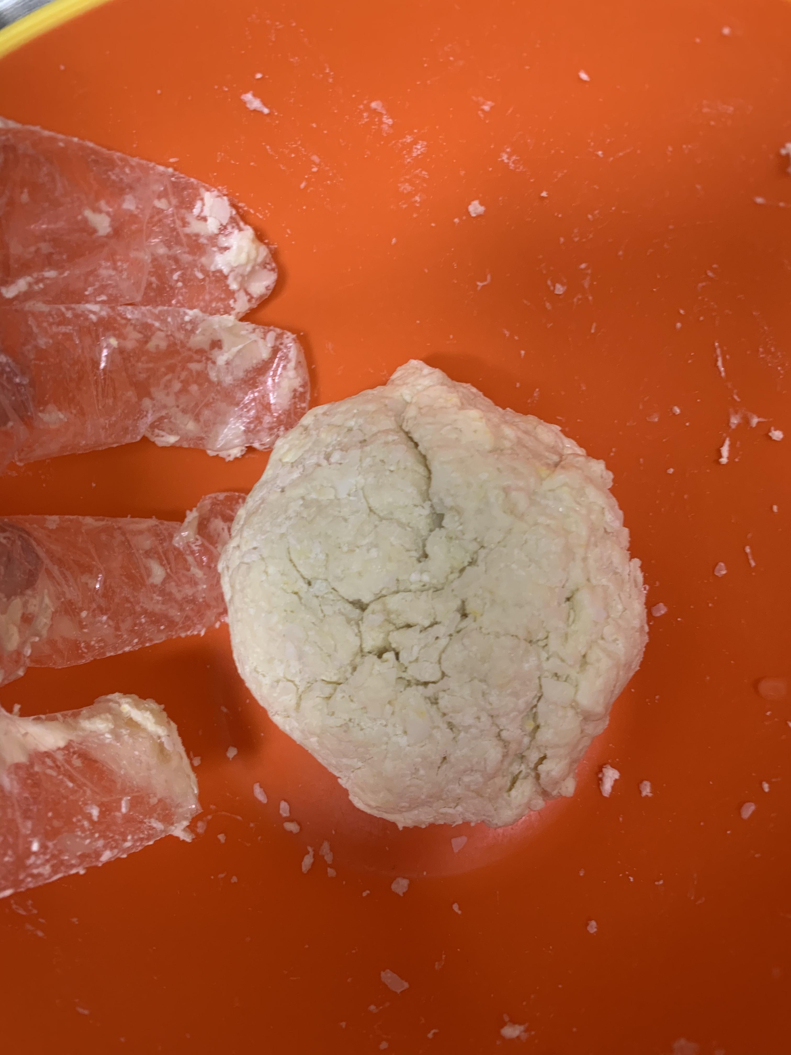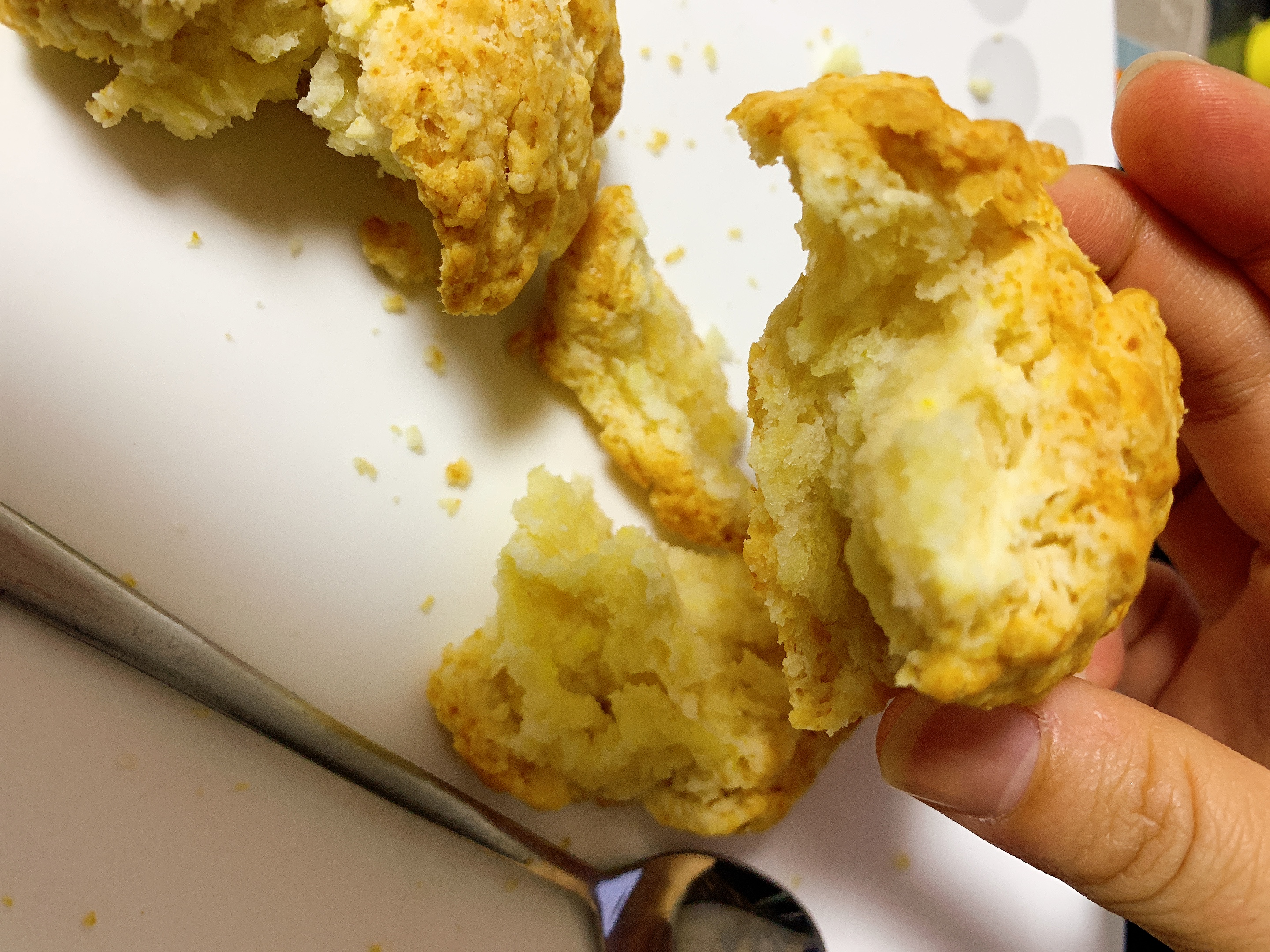 반죽을 워낙 퍽퍽하게 뭉쳐서인지 안에 노란 덩어리가 살짝 보이는 것 같다.