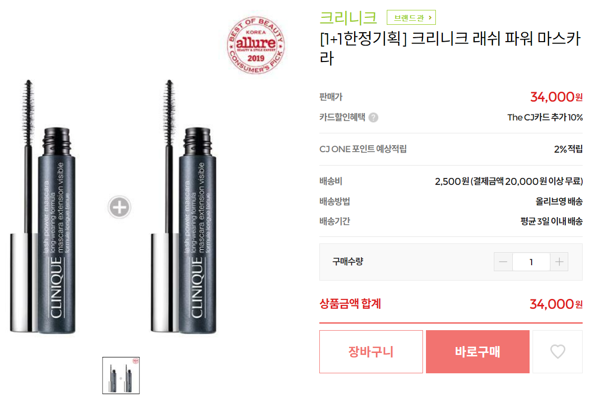 원래 크리니크 마스카라 유명템은 까만 통의 '래쉬 파워 마스카라' 제품인데