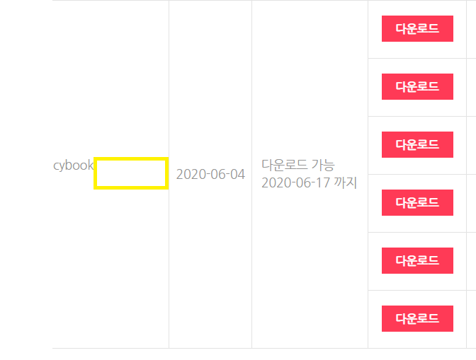 지난 6월 8일에 싸이북 문의 메일로 '다운로드 버튼이 생성되지 않는 문제'를 정리해서 보냈다.