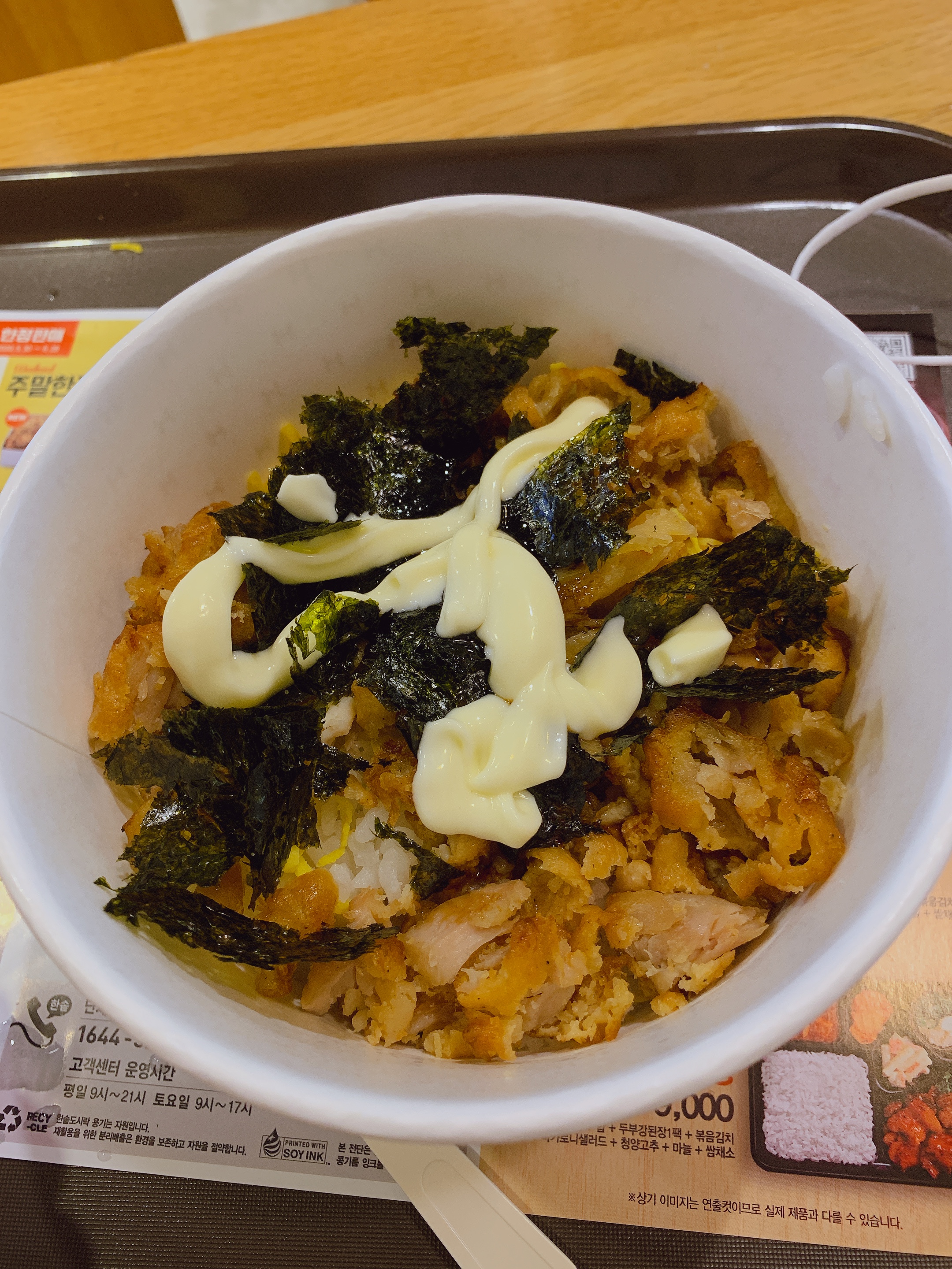 메뉴는 여윽시 추억돋는 치킨마요덮밥 주문. 요즘은 2,900원이다. 진심 갓성비 가격이다아