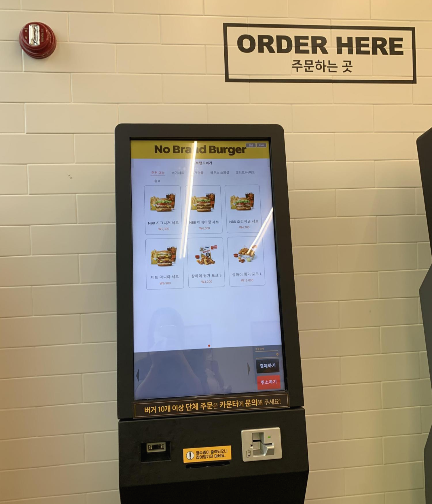 주문은 무인 키오스크에서 할 수 있다. 카드결제 가능.
