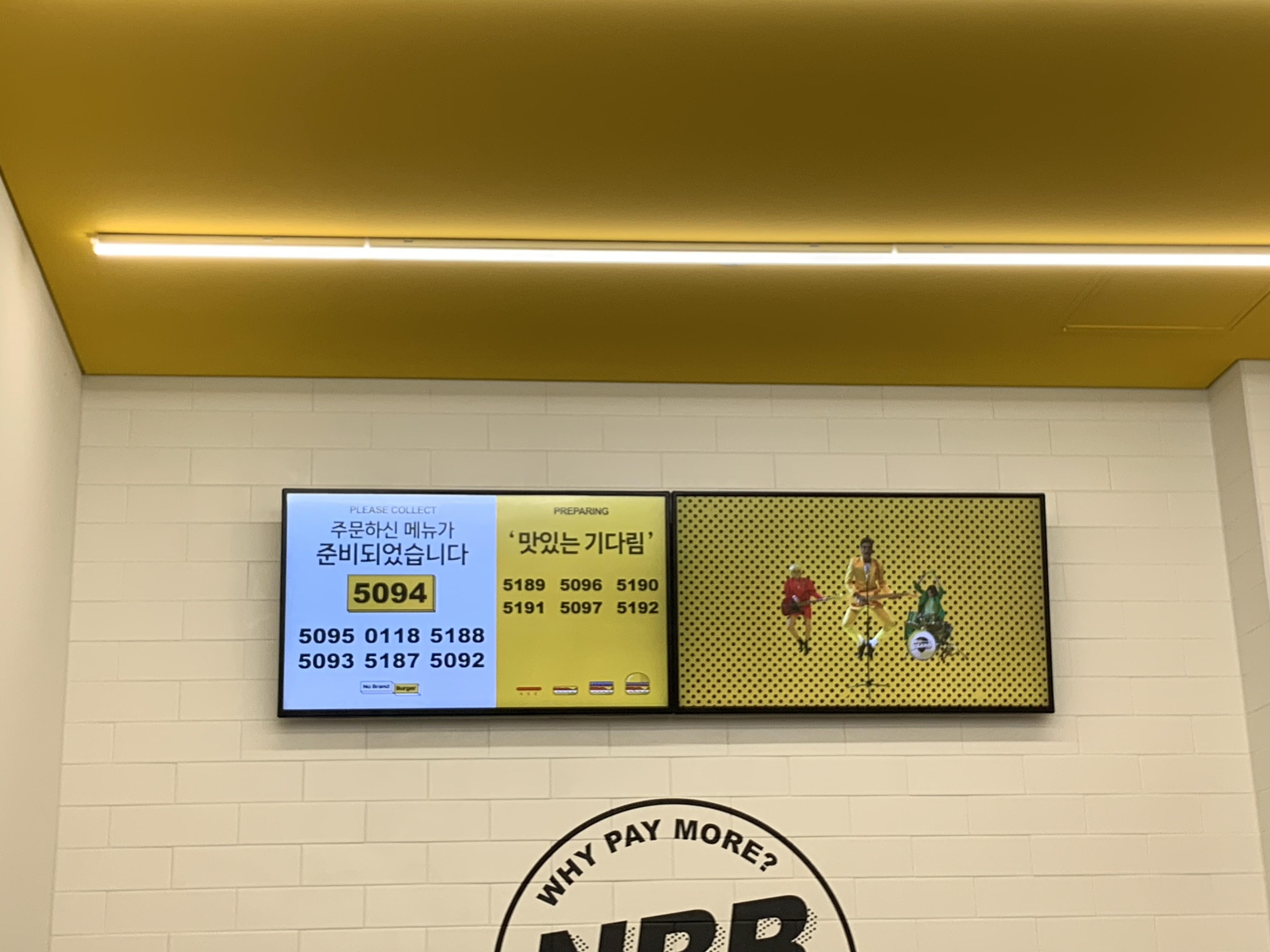 테이블이 위치한 한쪽 벽에는 이렇게 주문번호 대기 순서를 확인할 수 있게 되어있다.