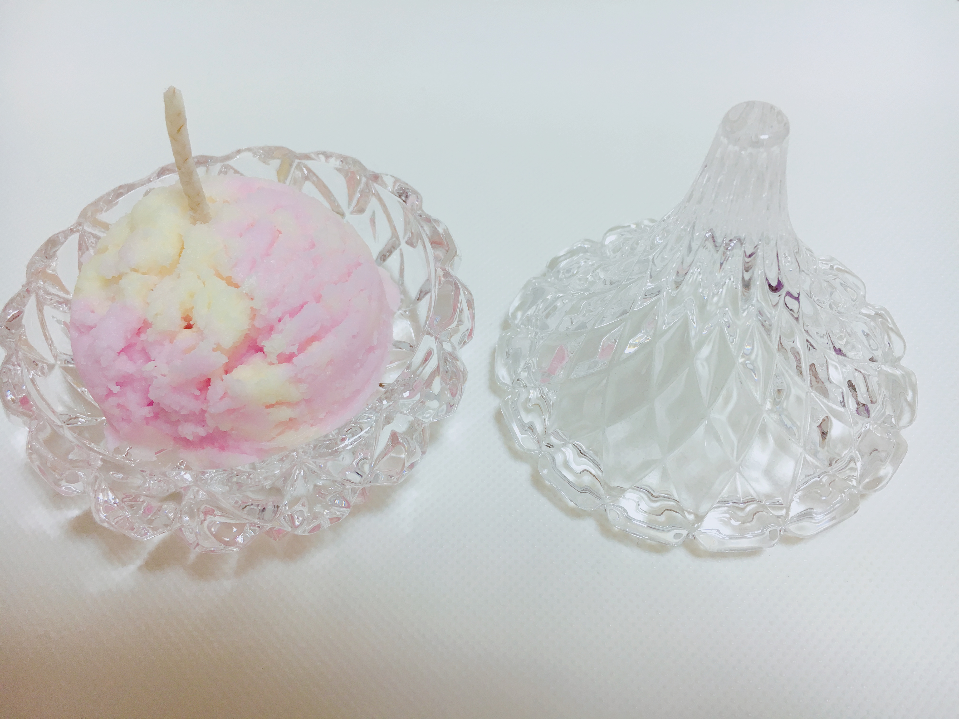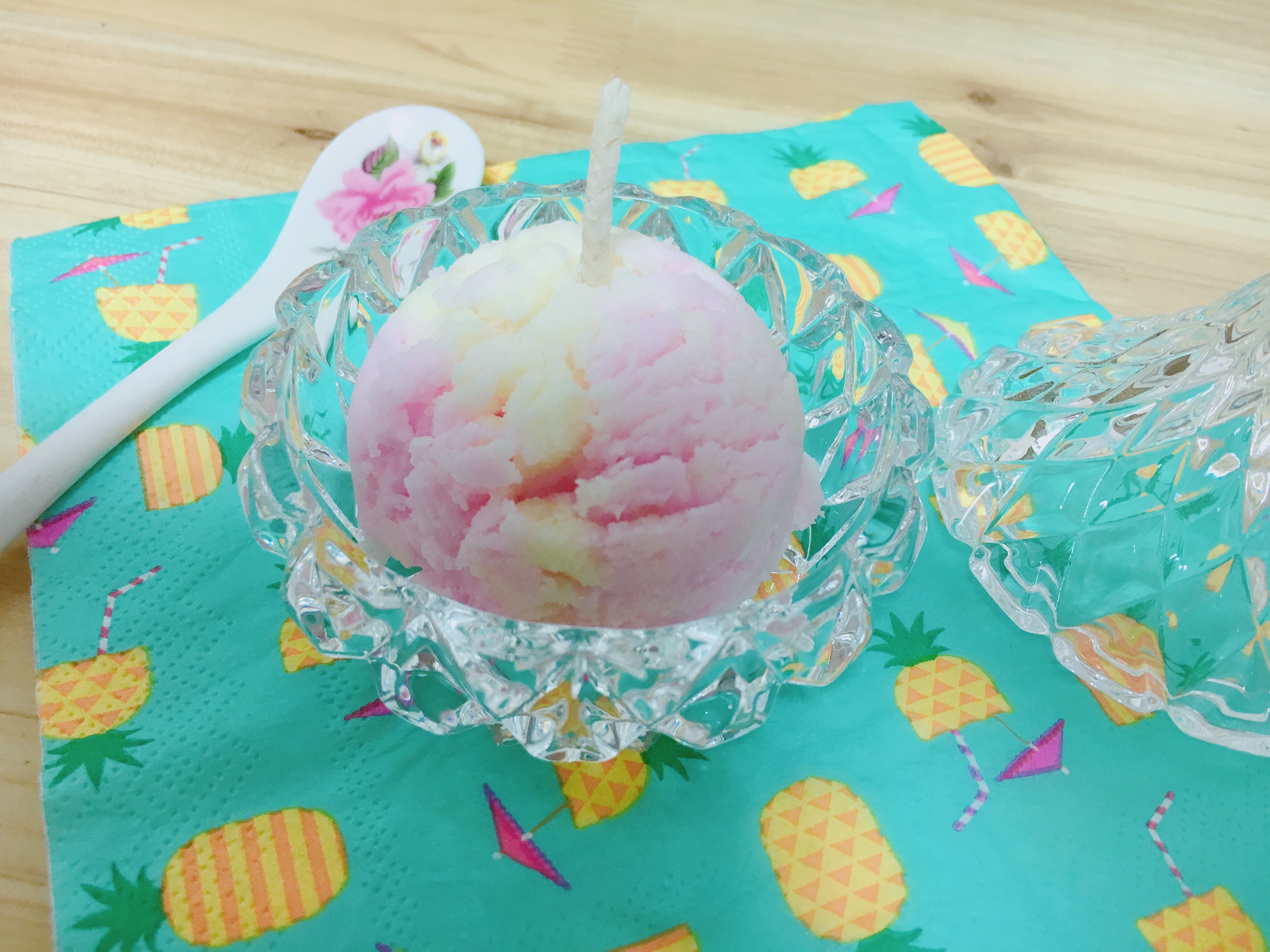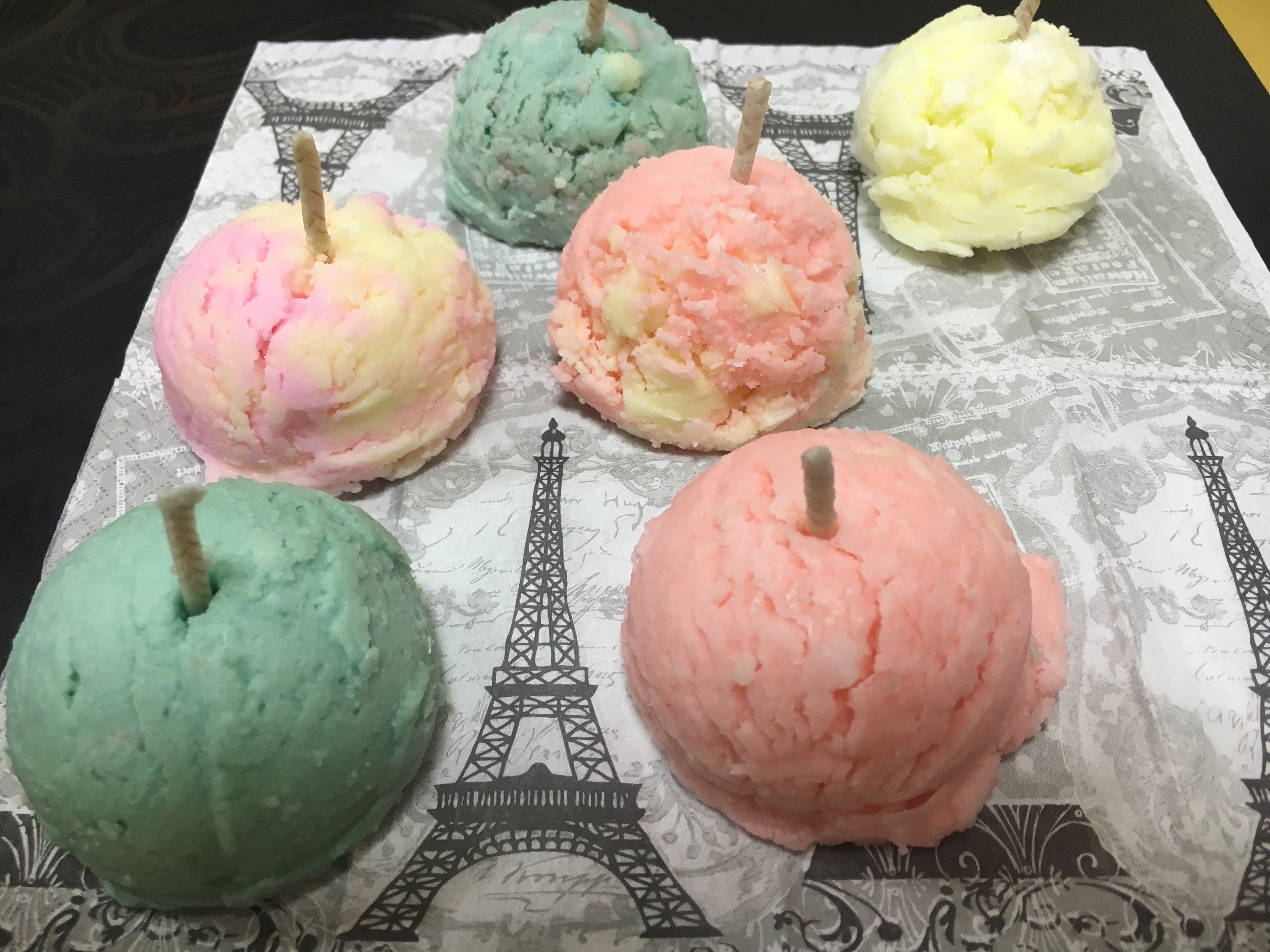 5. 크림화한 왁스가 굳기 전에 아이스크림 스쿱으로 예쁘게 딱 퍼낸다. (응? 끝?)