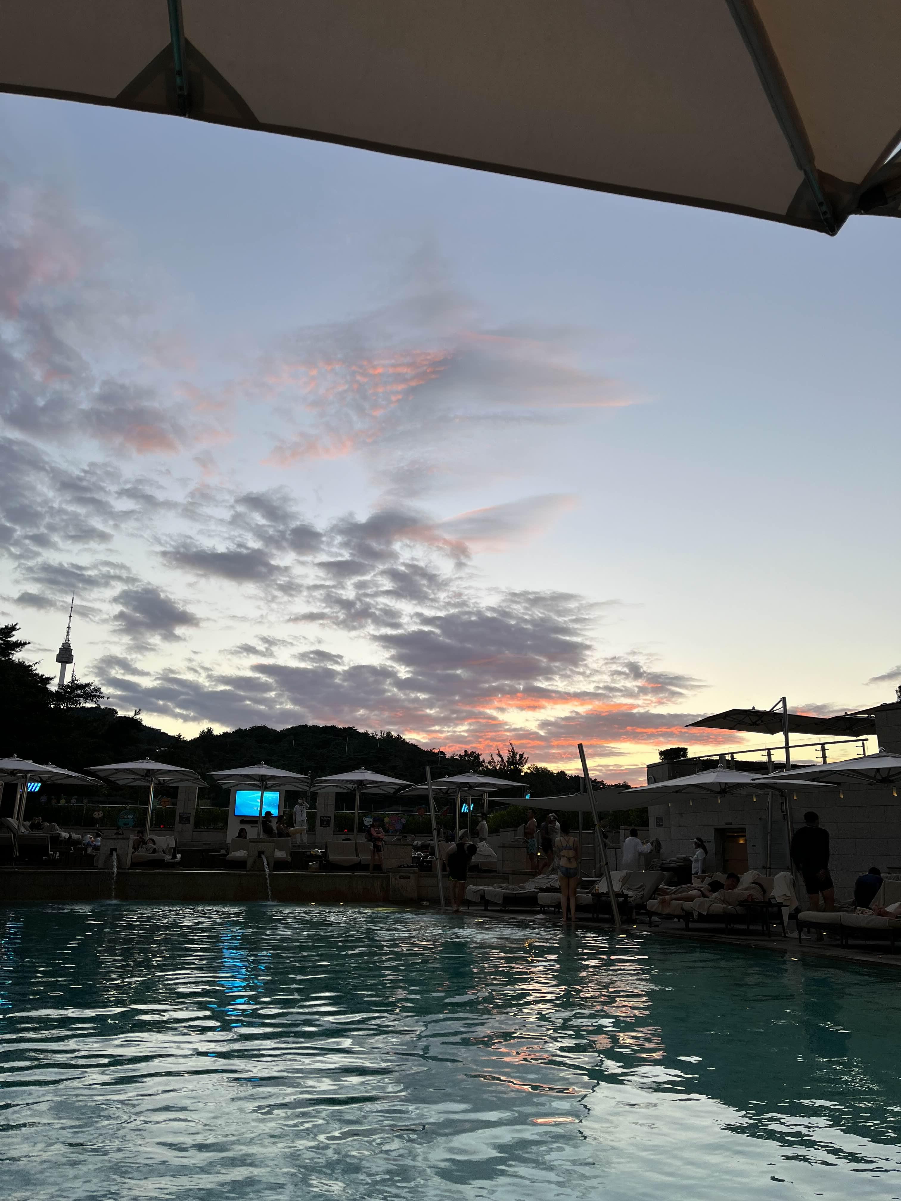 낮에 처음 입장했을 때는 사진에 있는 쪽 선베드, 즉 키즈풀을 등지고 있는 선베드에 있다가